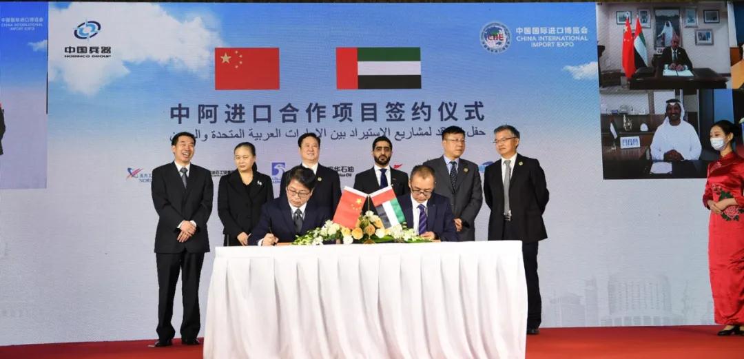 11月4日下午,阿拉伯聯(lián)合酋長國&中國兵器工業(yè)集團(tuán)進(jìn)口合作項(xiàng)目專場簽約儀式在上海舉行。