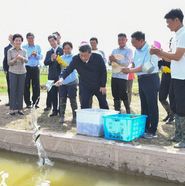 習(xí)近平總書記9日在銀川考察調(diào)研。他先后來到賀蘭縣稻漁空間鄉(xiāng)村生態(tài)觀光園、賀蘭山東麓葡萄種植園,了解當(dāng)?shù)匕l(fā)展特色農(nóng)業(yè)產(chǎn)業(yè)、加強賀蘭山生態(tài)保護等情況。 (攝影:新華社記者 鞠鵬、謝環(huán)馳、王曄、燕雁) |