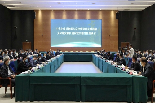 郝鵬指出,推進京津冀協(xié)同發(fā)展是以習(xí)近平同志為核心的黨中央著眼黨和國家發(fā)展全局作出的重大戰(zhàn)略決策。近年來,國務(wù)院國資委始終把推動中央企業(yè)與河北深化合作、支持雄安新區(qū)建設(shè)作為落實京津冀協(xié)同發(fā)展戰(zhàn)略的重要內(nèi)容,指導(dǎo)推動中央企業(yè)不斷加強與河北務(wù)實合作,積極有序高標準高質(zhì)量參與雄安新區(qū)建設(shè),充分發(fā)揮骨干作用,與河北和雄安新區(qū)心手相連、并肩前行,中央企業(yè)在雄安新區(qū)圍繞前沿信息技術(shù)、基礎(chǔ)設(shè)施建設(shè)、先進生物技術(shù)、現(xiàn)代服務(wù)業(yè)、能源、新材料等高端高新產(chǎn)業(yè)設(shè)立子公司、分公司及各類分支機構(gòu)已達100余家(個),在參與雄安新區(qū)啟動區(qū)建設(shè)和起步區(qū)重大基礎(chǔ)設(shè)施建設(shè)方面取得重要進展和積極成效。