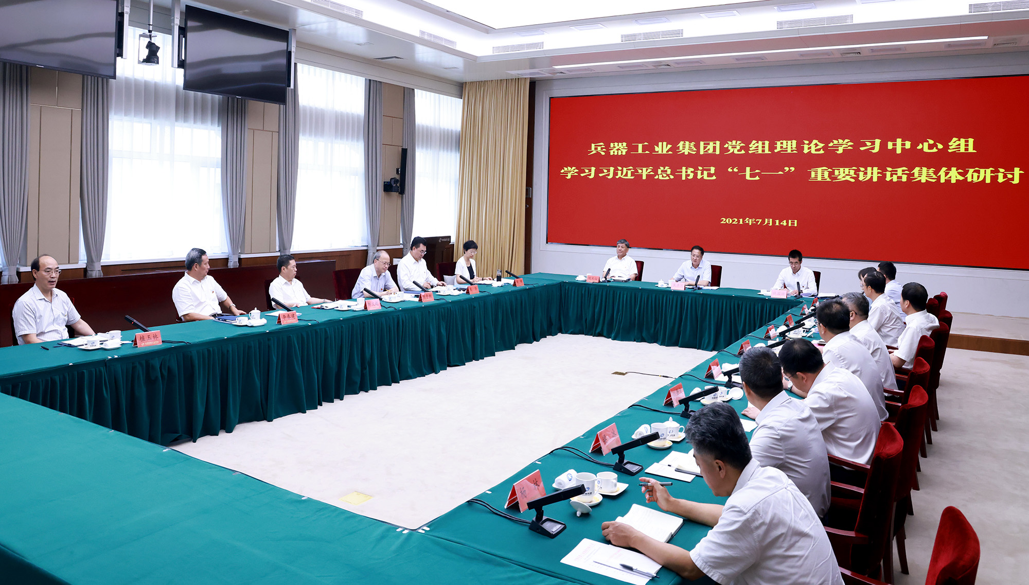 7月14日,中國兵器工業(yè)集團(tuán)有限公司黨組書記、董事長焦開河主持黨組理論學(xué)習(xí)中心組集體學(xué)習(xí)研討,學(xué)習(xí)貫徹習(xí)近平總書記“七一”重要講話精神,交流學(xué)習(xí)心得體會,結(jié)合集團(tuán)公司改革發(fā)展實(shí)際和各自分管領(lǐng)域、本職工作,研討貫徹落實(shí)思路措施。中央企業(yè)黨史學(xué)習(xí)教育第一指導(dǎo)組副組長杜國功列席并作指導(dǎo)講話,集團(tuán)公司董事、總經(jīng)理、黨組副書記劉大山,董事、黨組副書記周艦,黨組成員、總會計(jì)師張華,紀(jì)檢監(jiān)察組組長、黨組成員陳學(xué)釧,黨組成員、副總經(jīng)理鄒文超、李春建、植玉林參加集體學(xué)習(xí)研討。