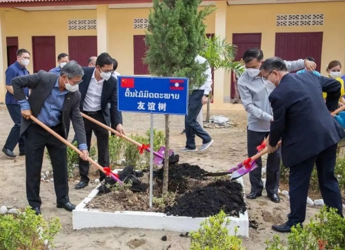活動(dòng)期間,北方國際項(xiàng)目部為安居村小學(xué)捐贈(zèng)書畫教室課桌椅等教學(xué)用具,并組織書法和繪畫老師為小學(xué)生授課,舉辦書畫比賽,評(píng)選優(yōu)秀作品進(jìn)行展覽。老撾公共工程與運(yùn)輸部部長(zhǎng)榮沙瓦從中方代表手中接過象征搬遷入住的鑰匙,并共同種下象征友誼的柏樹。