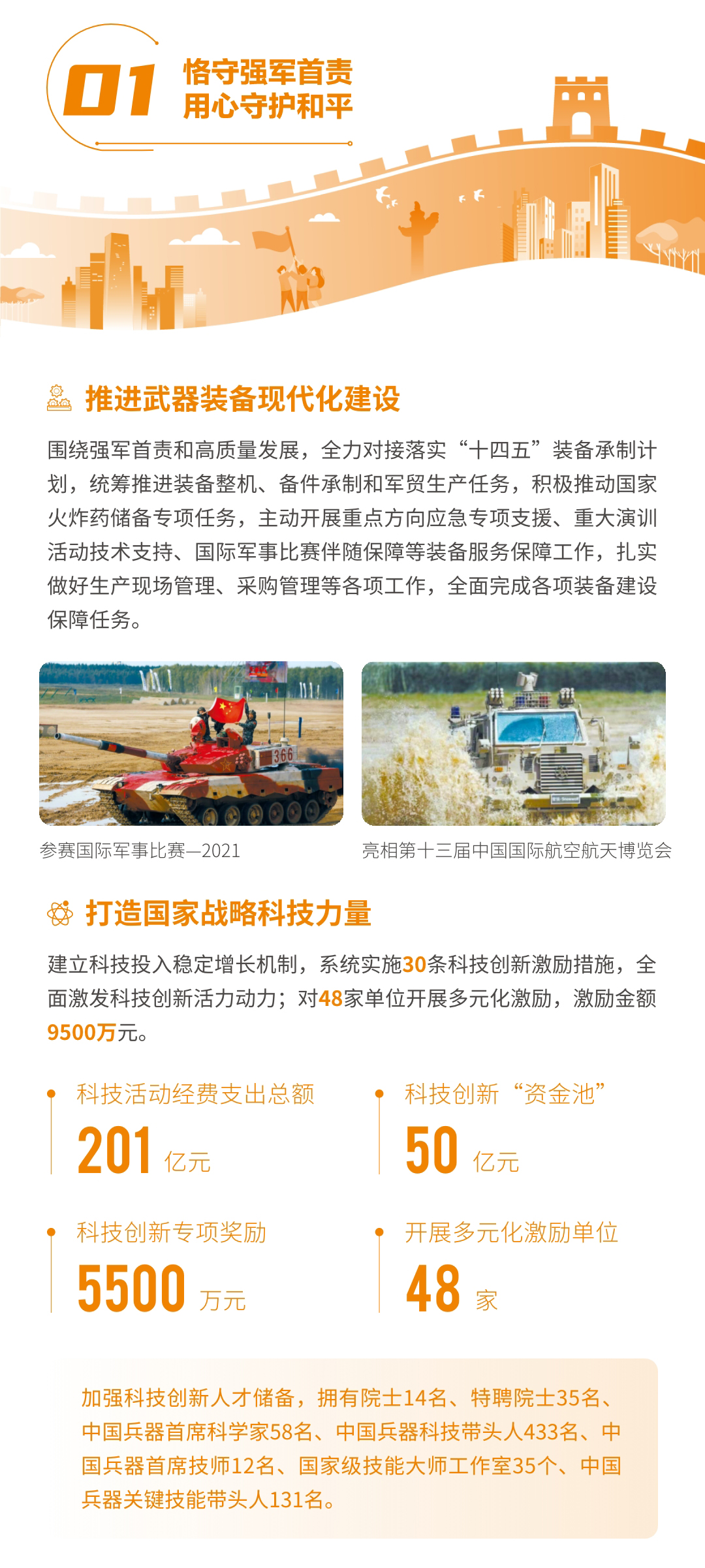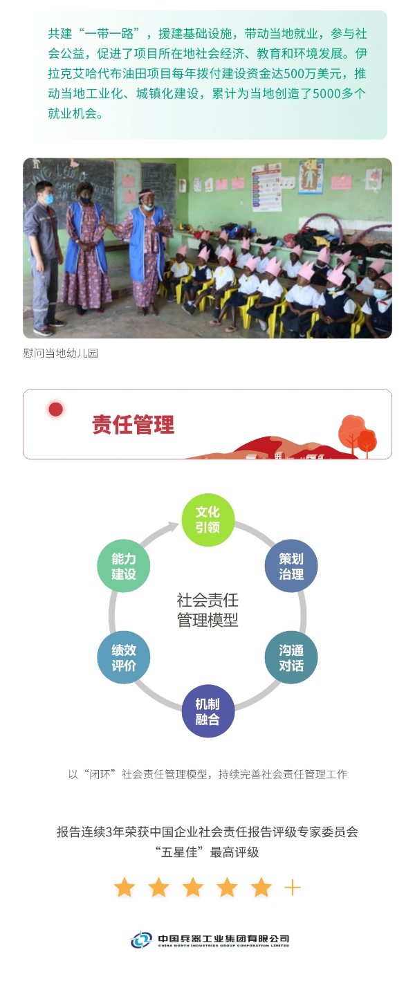 近日,兵器工業(yè)集團正式發(fā)布第十三份年度社會責任報告——《中國兵器工業(yè)集團有限公司2021年社會責任報告》,以“用心守護和平、用力爭創(chuàng)一流、用情溫暖社會”為主題,從恪守強軍首責、服務經濟建設、共創(chuàng)美好生活三個維度,向社會全面披露2021年度履責實踐和履責業(yè)績?!秷蟾妗愤B續(xù)第三年獲得中國企業(yè)社會責任報告評級專家委員會“五星佳”評級,兵器工業(yè)集團成為軍工行業(yè)唯一連續(xù)11年獲得五星及五星佳最高評級的企業(yè)。 一圖解碼兵器工業(yè)的“責任力量” |