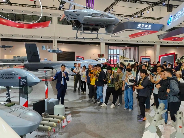 本屆航展,兵器工業(yè)集團(tuán)著重展示數(shù)智賦能軍貿(mào)合成旅作戰(zhàn)體系?!疤金^”現(xiàn)場,新聞發(fā)言人向記者團(tuán)介紹了本屆航展集團(tuán)公司參展亮點(diǎn)、明星產(chǎn)品和技術(shù)發(fā)展成果,并對(duì)VT5-U輕型坦克、VU-T10無人平臺(tái)、SR5多管火箭炮、金雕CR500B無人直升機(jī)系統(tǒng)、指揮控制中心等參展裝備和技術(shù)作了重點(diǎn)介紹,媒體記者進(jìn)一步了解了裝備的性能和特點(diǎn)。在無人火力展區(qū),記者團(tuán)還走進(jìn)仿真訓(xùn)練體驗(yàn)區(qū),親身“使用”單兵武器,體驗(yàn)裝備性能。