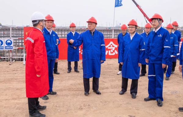 劉大山一行深入華錦聯合石化,實地察看了原油罐區(qū)、煤柴油加氫裝置、乙烯裝置、動力站裝置、煤制氫聯合裝置、業(yè)主碼頭等施工現場,詳細了解樁基施工、土建基礎施工、鋼結構安裝等建設情況,召開座談會聽取了華錦集團關于項目建設情況、北方公司振華石油關于項目配套工程進展情況的匯報,對各方作出的努力、取得的積極進展給予肯定,對下一步工作提出要求。