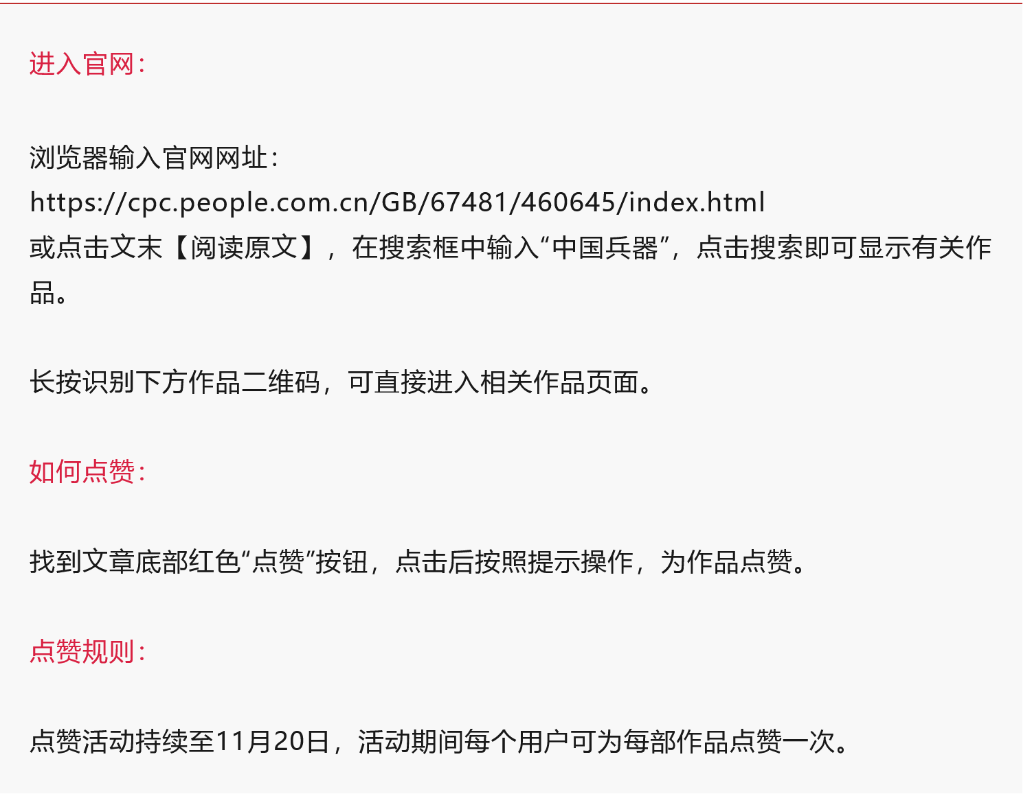 為持續(xù)提升中央企業(yè)整體形象,凝聚干事創(chuàng)業(yè)精神動(dòng)力,助力“十四五”圓滿收官,推動(dòng)“十五五”順利開局,今年6月,第八屆中央企業(yè)優(yōu)秀故事暨2025AIGC創(chuàng)意傳播作品征集展示活動(dòng)正式啟動(dòng)。本次活動(dòng)以“決戰(zhàn)收官‘十四五’ 啟航奮進(jìn)開新篇”為主題,圍繞“五年成就”“時(shí)代擔(dān)當(dāng)”兩個(gè)維度進(jìn)行征集。鼓勵(lì)廣大中央企業(yè)以“輕量化、強(qiáng)互動(dòng)”創(chuàng)新表達(dá)形式,增強(qiáng)吸引力感染力,充分展現(xiàn)中央企業(yè)精神面貌。參選作品擇優(yōu)在活動(dòng)官網(wǎng)進(jìn)行集中展示,并將適時(shí)舉辦第八屆中央企業(yè)優(yōu)秀故事暨2025AIGC創(chuàng)意傳播作品發(fā)布活動(dòng),開展優(yōu)秀故事成果展、AIGC創(chuàng)意傳播成果專題展覽。 兵器工業(yè)集團(tuán)共有45部作品入選,歡迎大家一起來為“兵器好故事”點(diǎn)贊! 點(diǎn)贊方法